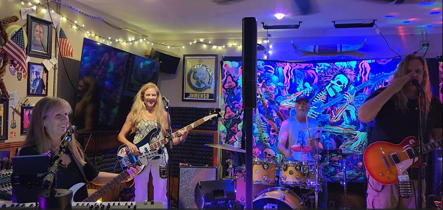 Lori not only plays the bass, but she also sings beautifully while doing so. Not an easy thing to do. Lori has so much fun on stage that she makes it extra fun for everyone.