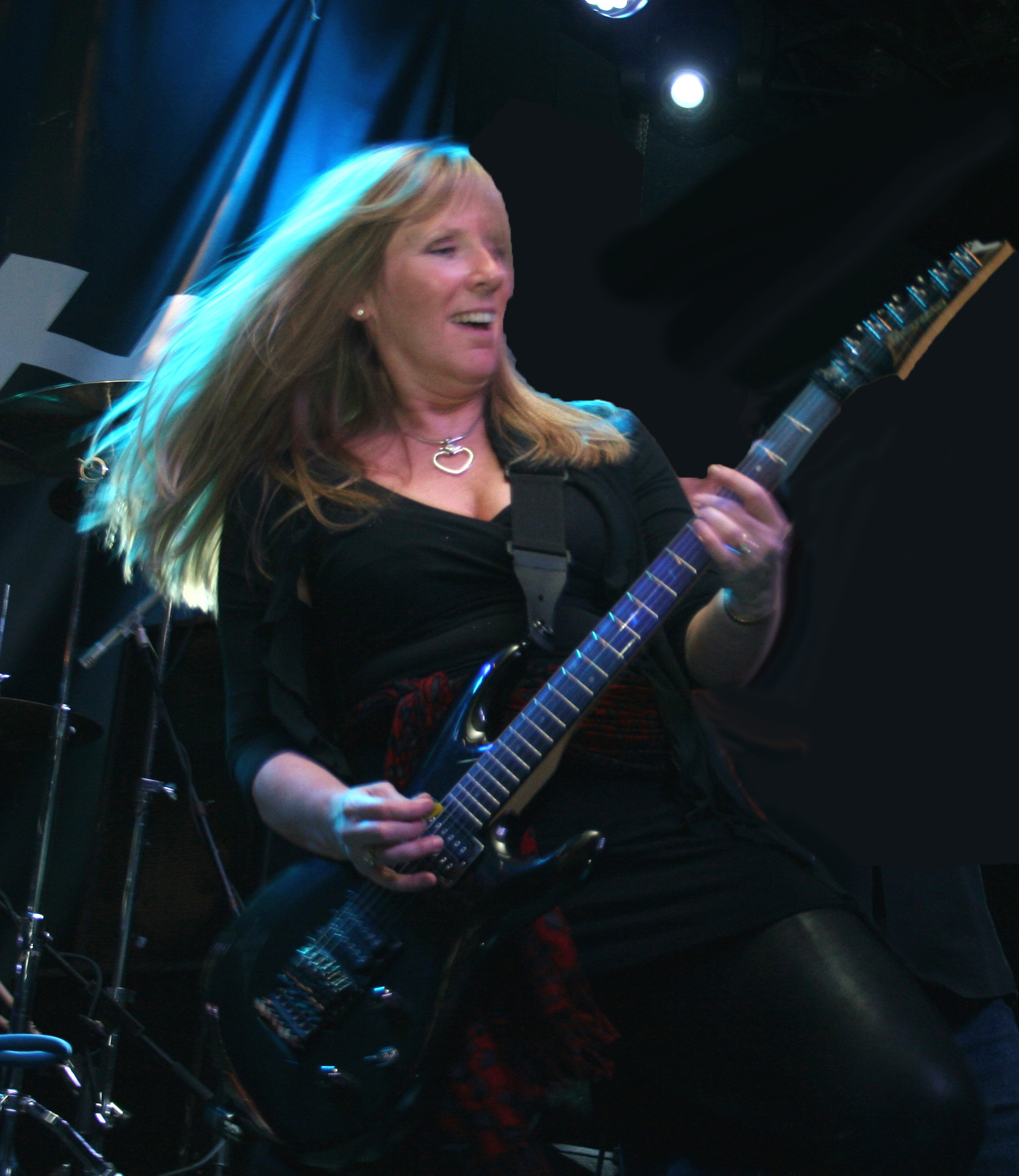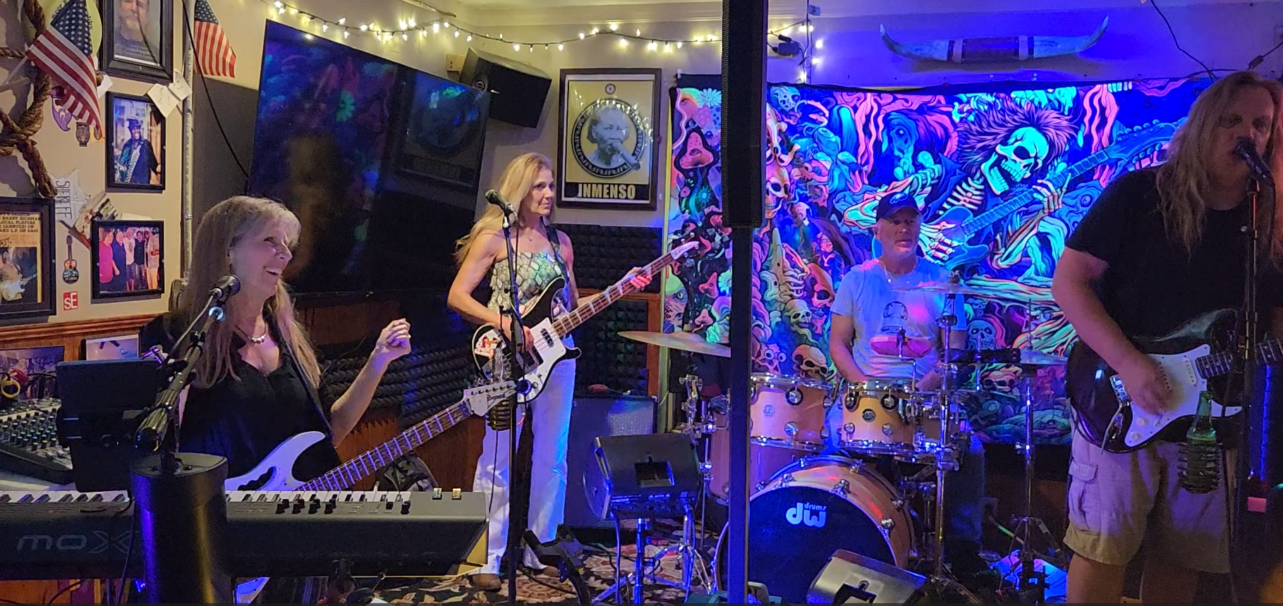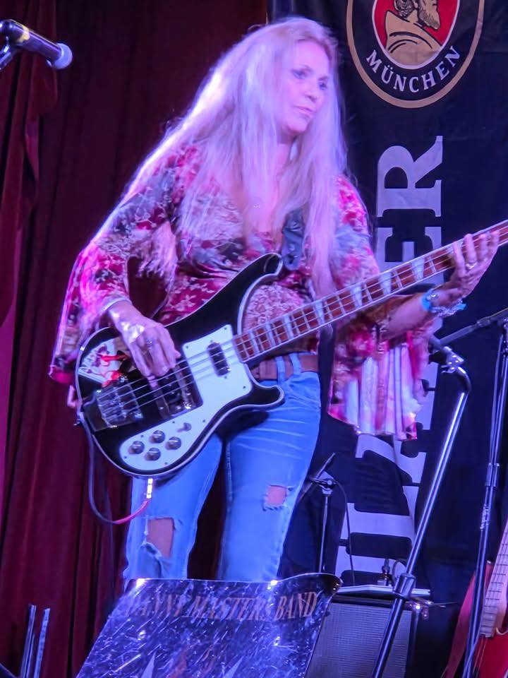 Lori not only plays the bass, she sings beatifully while doing so. Not an easy thing to do. Lori has so much fun on stage that she makes it extra fun for everyone.